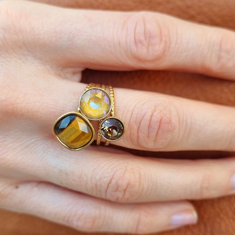 La bague Trilogie composée en acier inoxydable allie 3 pierres naturelles et cristaux dans un design harmonieux et subtil !