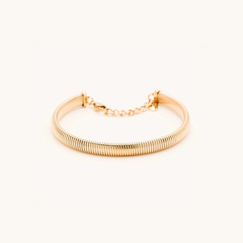 Parfait pour ajouter une touche de chic à votre tenue, le bracelet Bonie présente un design unique d’anneau strié. Avec sa chaine d’ajustage, il s’adapte parfaitement à votre poignet. Conçu en acier inoxydable, il est garanti sans nickel, résiste à l’eau et ne noircit pas.