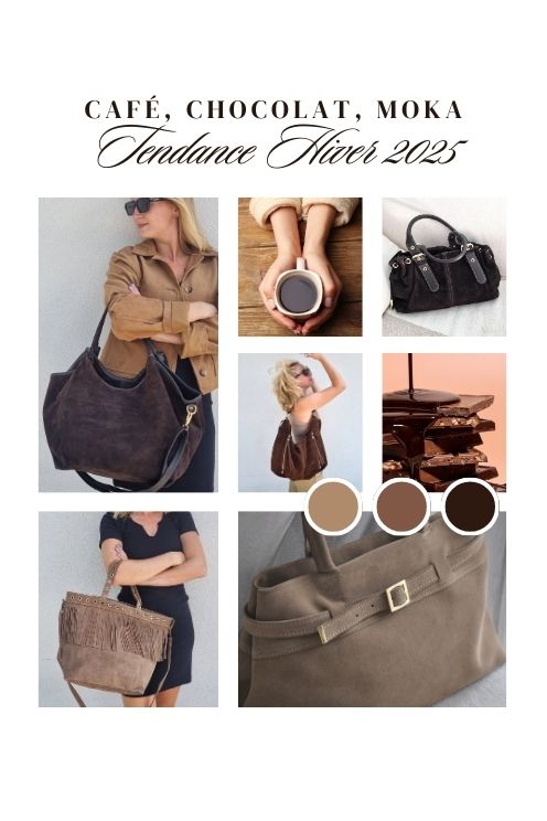 Exit le noir classique ! Cet hiver, les sacs s’habillent de teintes chaleureuses et gourmandes : chocolat intense, café profond, moka onctueux… Ces couleurs riches réchauffent la saison avec élégance et s’accordent à merveille avec toutes vos tenues. Zoom sur…