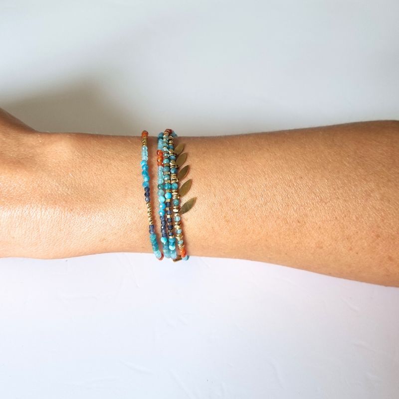 Pierre bleue : apatite, amazonite, lapiz lazuli – Pierre orange : cornaline