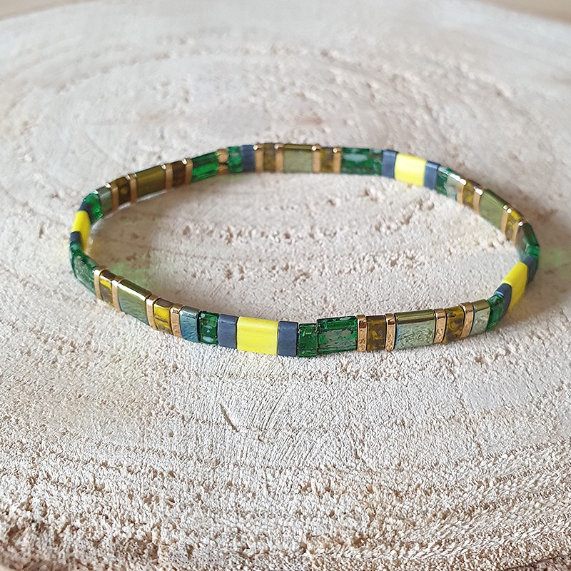 Perles Miyuki sur lien élastique aux tonalités de vert