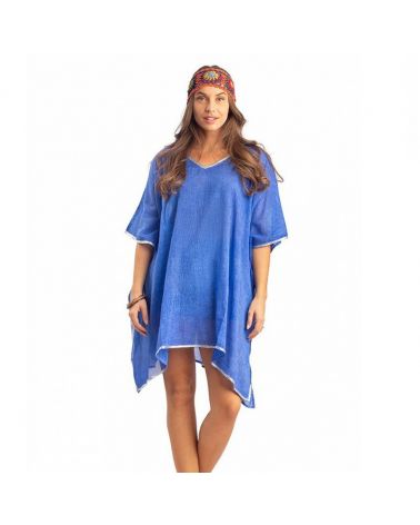 Caftan court washed bleu royal, élégance et confort sous le soleil !