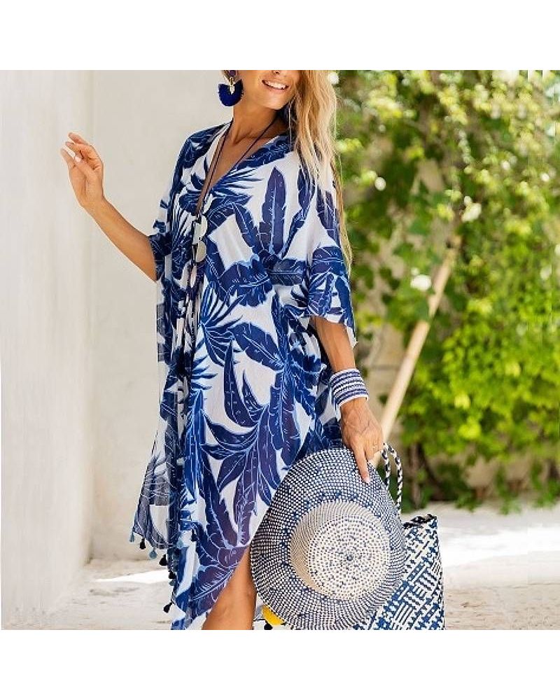 Pièce clé pour peaufiner votre style balnéaire, ce kimono est l'alliance parfaite de confort et de style. En coton 100%, il est aussi agréable à porter qu'à regarder, avec ses jolies feuilles de bananier bleutées. Super pratique, il s'enfile en un clin d'œil sur un petit quelque chose de simple ou juste au-dessus de votre maillot préféré.