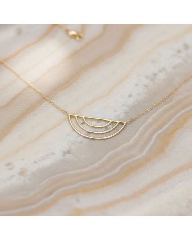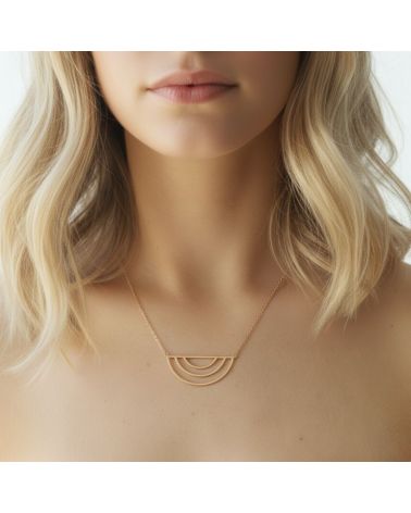Un bijou au charme minimaliste qui attire l’œil sans en faire trop. Ce collier ras de cou en plaqué or 18 carats (3 microns) mise sur la finesse et l’élégance d’un pendentif graphique en demi-cercles.