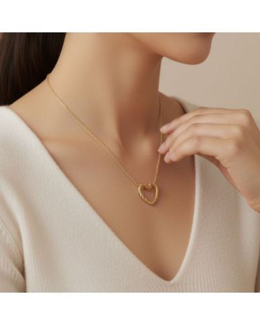 Bijou intemporel, le collier avec pendentif motif cœur torsadé, c’est le petit plus qui va avec tout, de votre tee-shirt préféré au petit pull douillet.