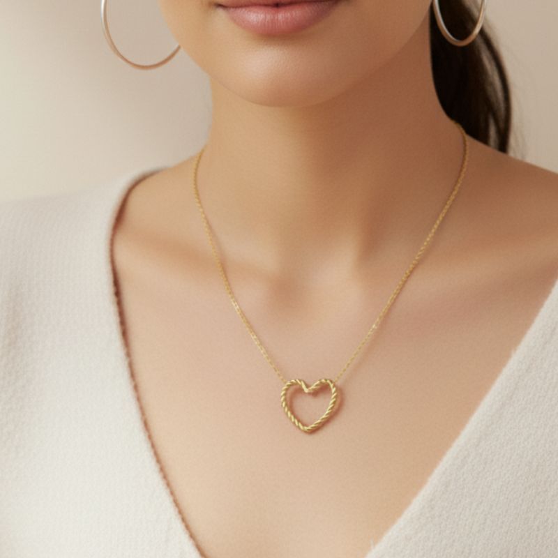 Bijou intemporel, le collier avec pendentif motif cœur torsadé, c’est le petit plus qui va avec tout, de votre tee-shirt préféré au petit pull douillet.