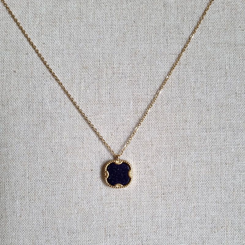 Collier ras de cou en acier inoxydable serti d’un pendentif pierre Sable Bleu – Création Bohm Paris