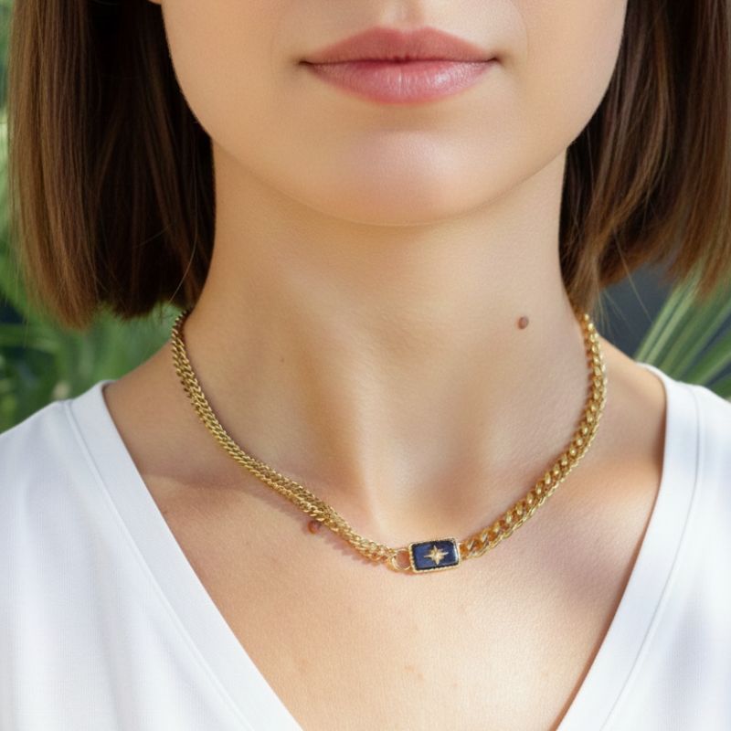 Une constellation Étoile du Nord ajoute la touche unique et élégante à ce collier.