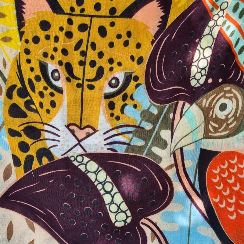 Étole Carrée Panthère et toucan – Création Palme Paris