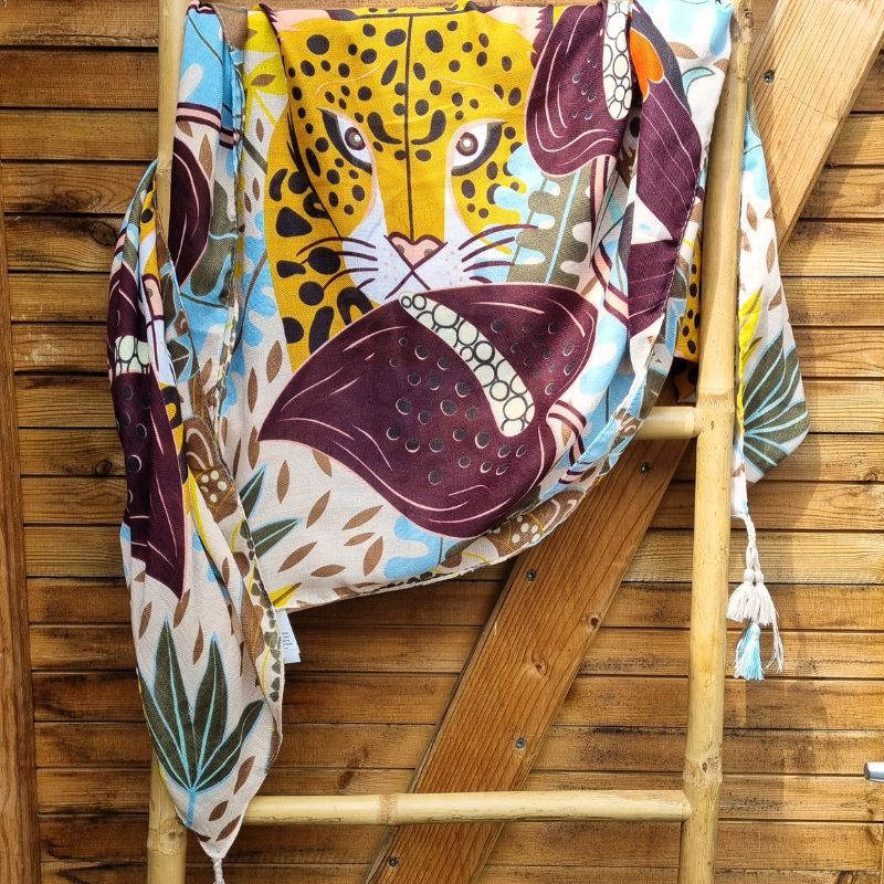 Étole « Carré panthère et toucan » – Création Palme Paris