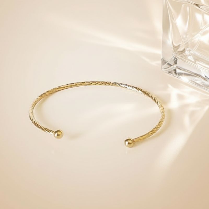 Jonc Plaqué Or semi-ouvert – Motif Torsadé – 18 Carats / 5 microns