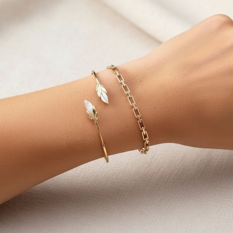 Semi ouvert, bracelet rigide composé de maillons de chaines fines