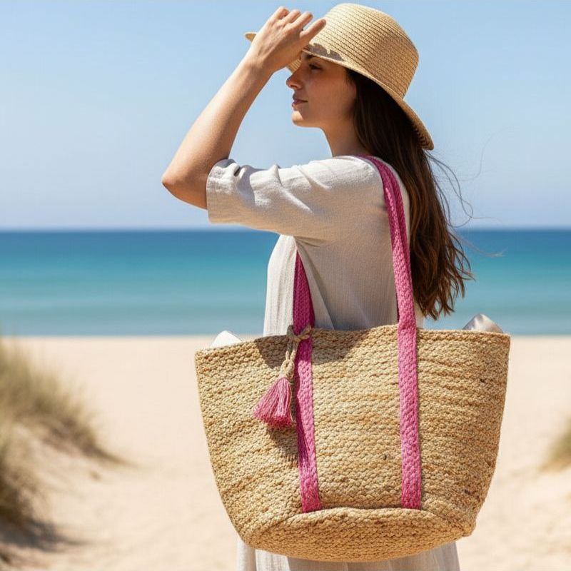 Les détails rose ajoute à ce sac naturel la touche d’élégance pour un style effortless