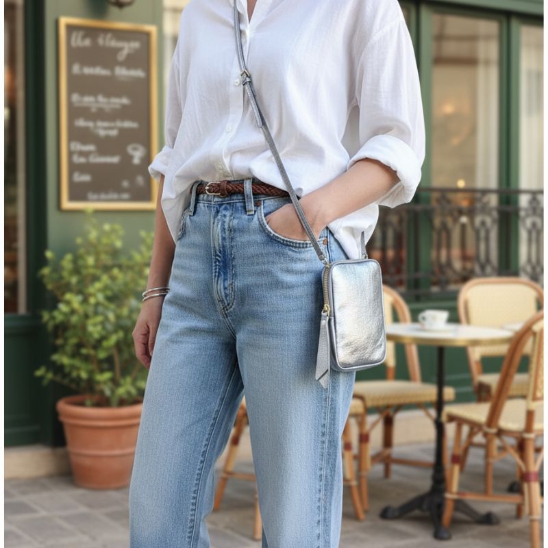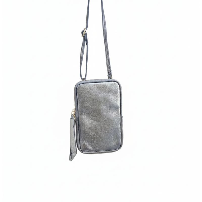 Pochette de téléphone Lara, cuir irisé, couleur gris argenté
