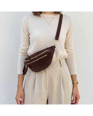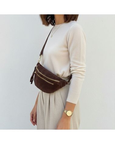 De fabrication italienne, double zip, vous adorerez porter ce sac banane en daim en bandoulière ou en croisé. Sa ceinture sangle est ajustable et amovible.
