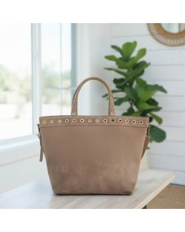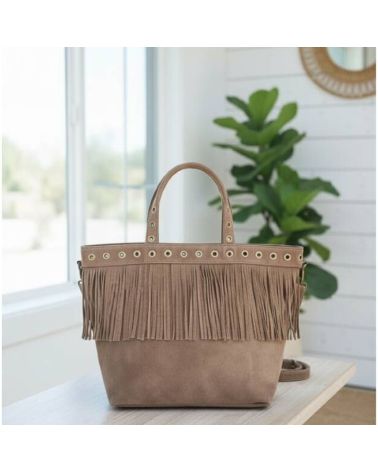 Flavie, le cabas à franges qui en jette ! Ce cabas en daim fabriqué en Italie a ce petit truc en plus qui fait toute la différence : une rangée de longues franges ultra stylées, soulignées par une ligne d’œillets métalliques qui lui donnent un look folk-rock assumé.