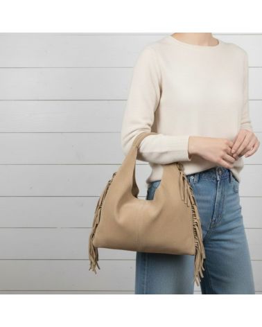 Giordana, c’est le petit sac parfait pour sortir légère. Une forme demi-lune qu’on adore, un daim italien, et des franges sur les côtés pour cette touche folk qui fait toute la différence.