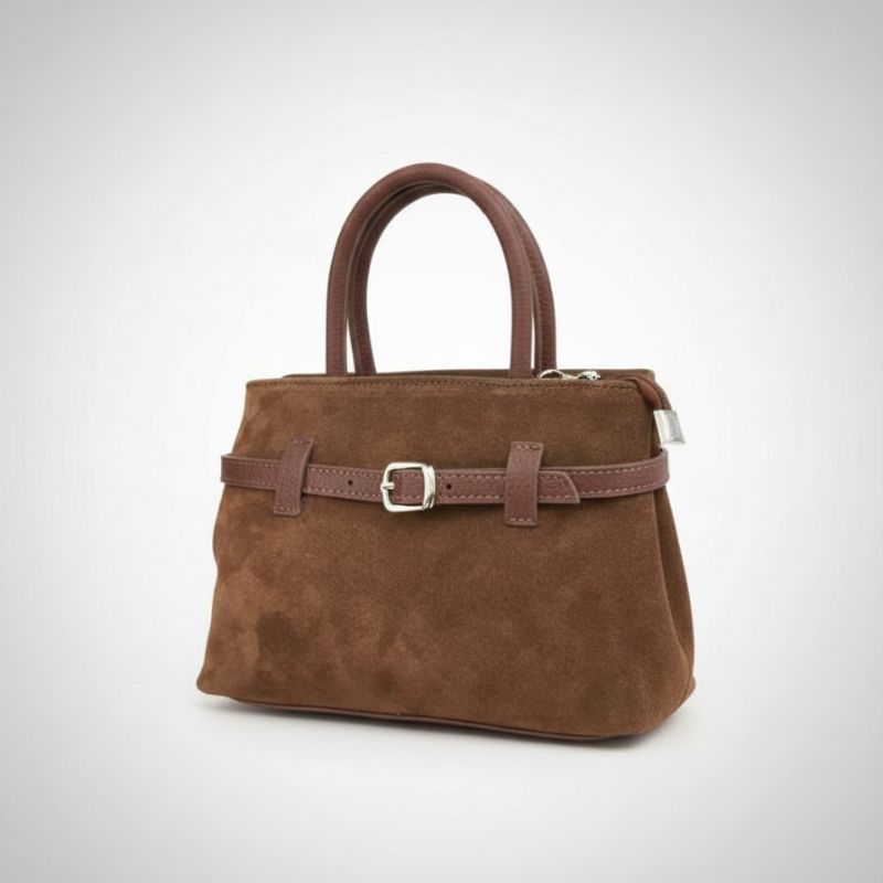 Le sac Anaé est pile dans la tendance des sacs urbains compacts qu’on voit partout cette saison. Avec son daim brun tout doux et son détail ceinture, il apporte une touche chic sans en faire trop.