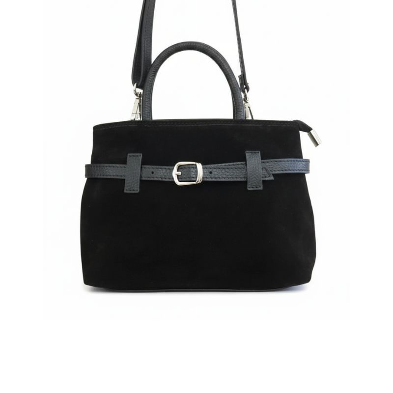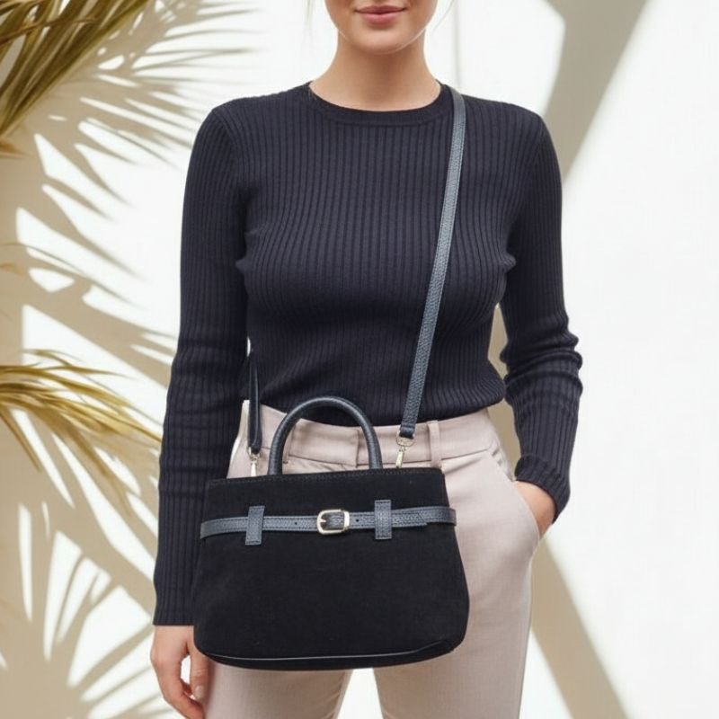 Le sac Anaé est pile dans la tendance des sacs urbains compacts qu’on voit partout cette saison. Avec son daim noir tout doux et son détail ceinture, il apporte une touche chic sans en faire trop.