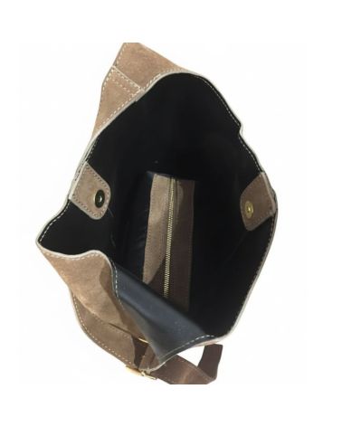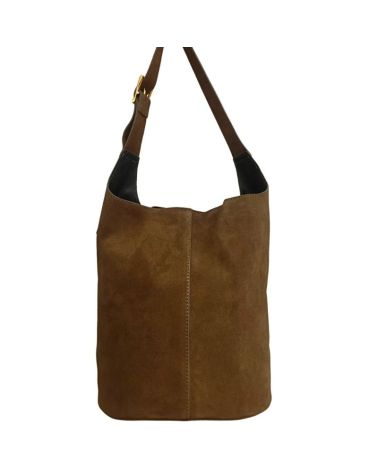 Un sac en daim au format seau structuré, élégant et bien tenu. Sa silhouette nette apporte tout de suite du style, porté à l’épaule au quotidien. Fabriqué en Italie, il séduit par la qualité de son cuir nubuck (daim) et son allure intemporelle.