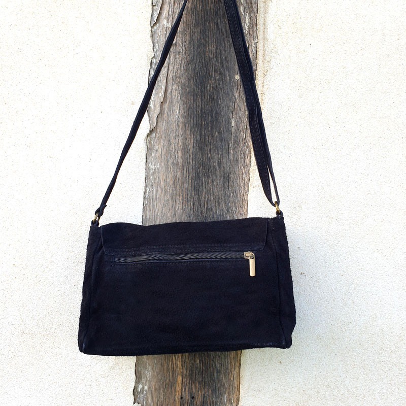 Sac besace bandoulière double boucle noir Rabat avec boucles fantaisie / fermeture par pression aimantée Fermeture à glissière / poche zippée au dos Intérieur doublé synthétique avec poche côté Bandoulière réglable. Dimension : 25 x 16 cm / profondeur 8 cm Composition Daim Couleurs Noir Styles Casual Chic