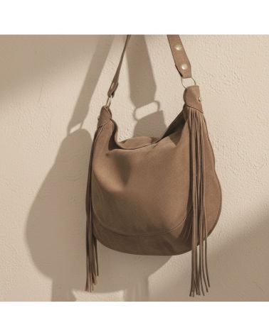 Le sac à franges Arizona est le genre de sac qu’on attrape sans réfléchir, parce qu’il va avec tout, qu’il a du style, et qu’il en jette sans en faire trop. Avec sa coupe souple, son daim de haute qualité, ses grandes franges et sa belle couleur taupe, il donne direct du caractère à vos looks du quotidien.